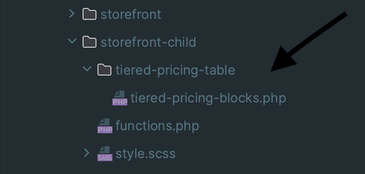 So, to override the template for pricing blocks, we have to copy the tiered-pricing-blocks.php file to the [Child theme]/tiered-pricing-table/ directory: